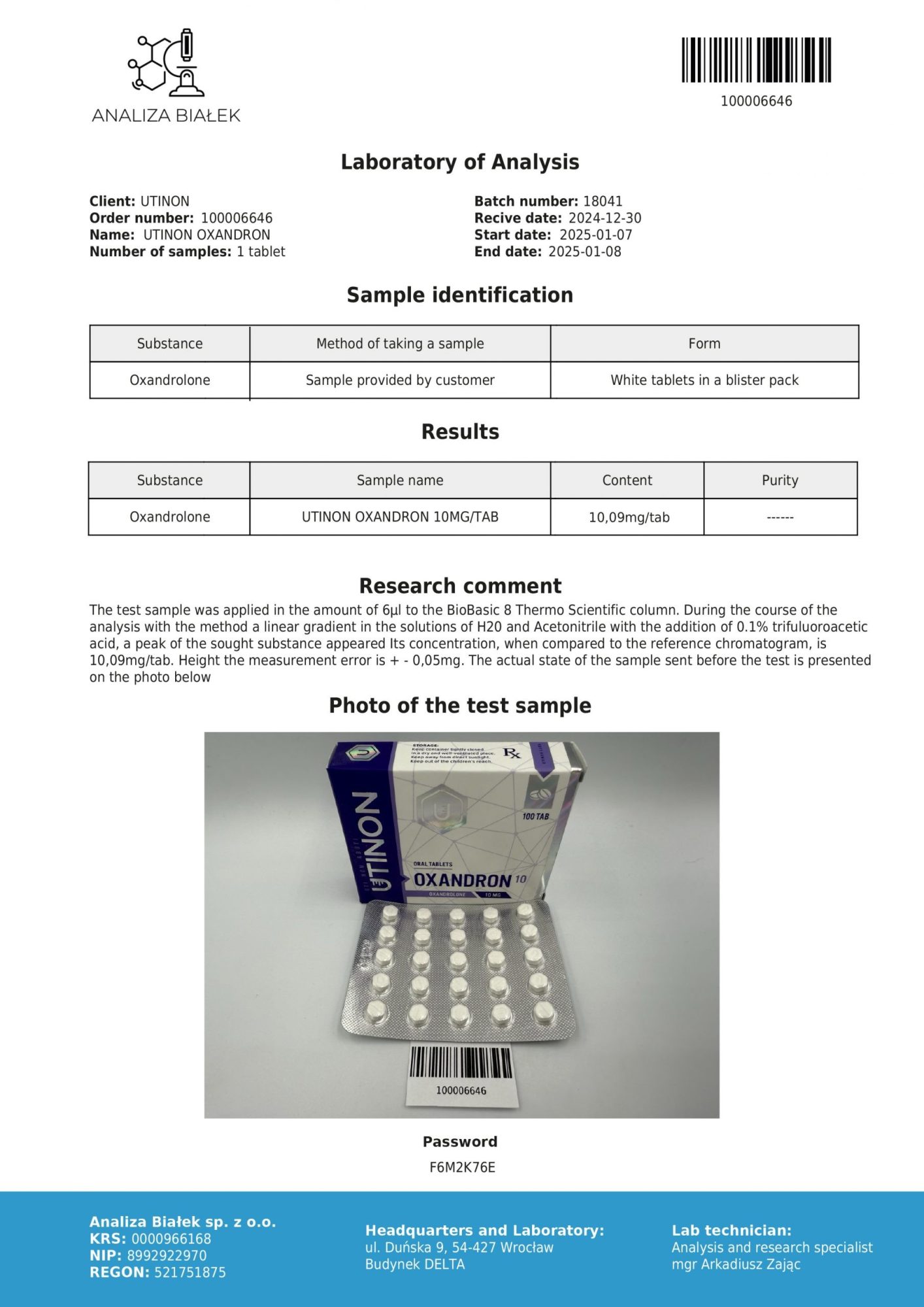 100 tabletten van 10 mg Anavar van het merk Utinon.