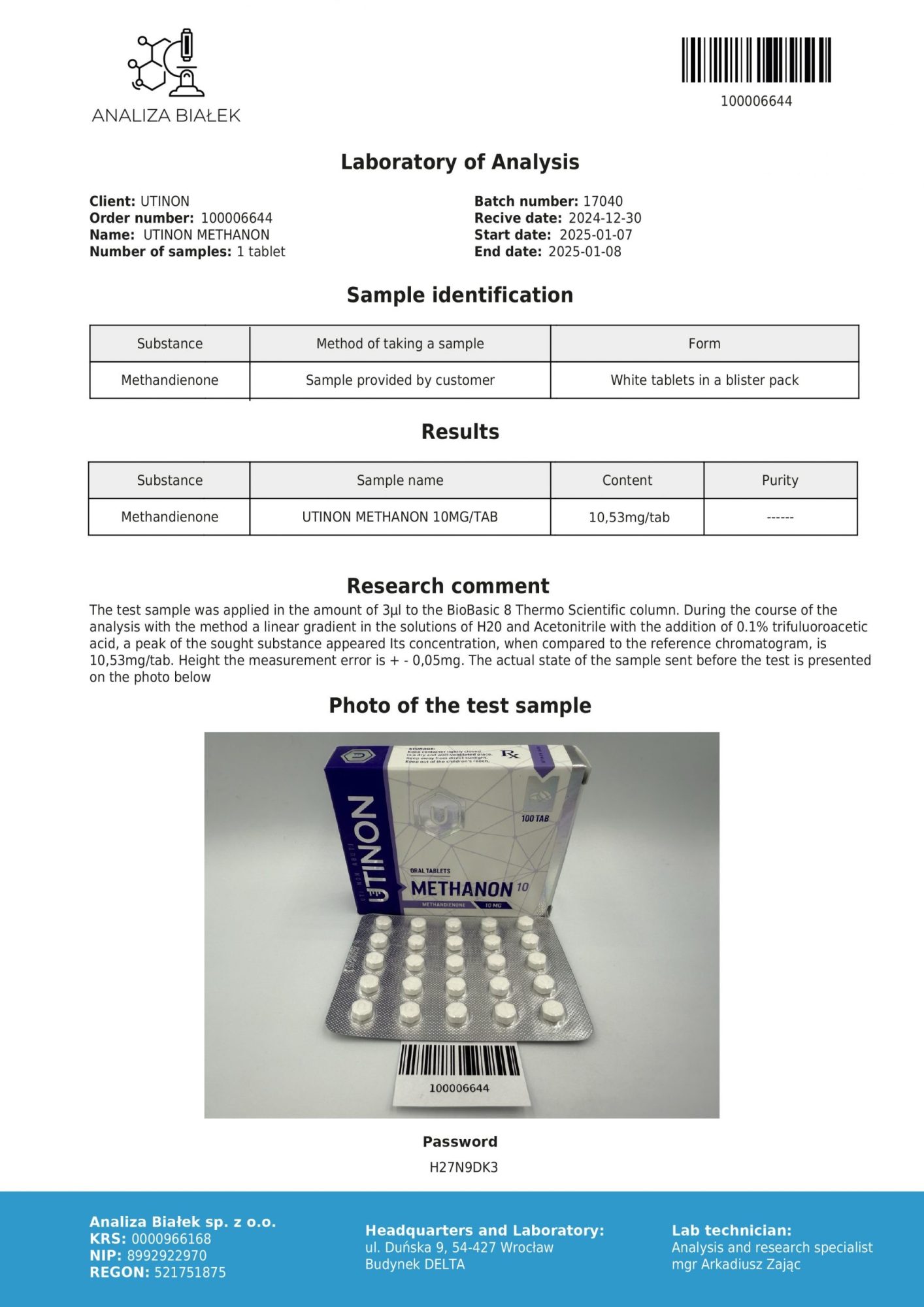 100 tabletten van 10 mg Dianabol van het merk Utinon.