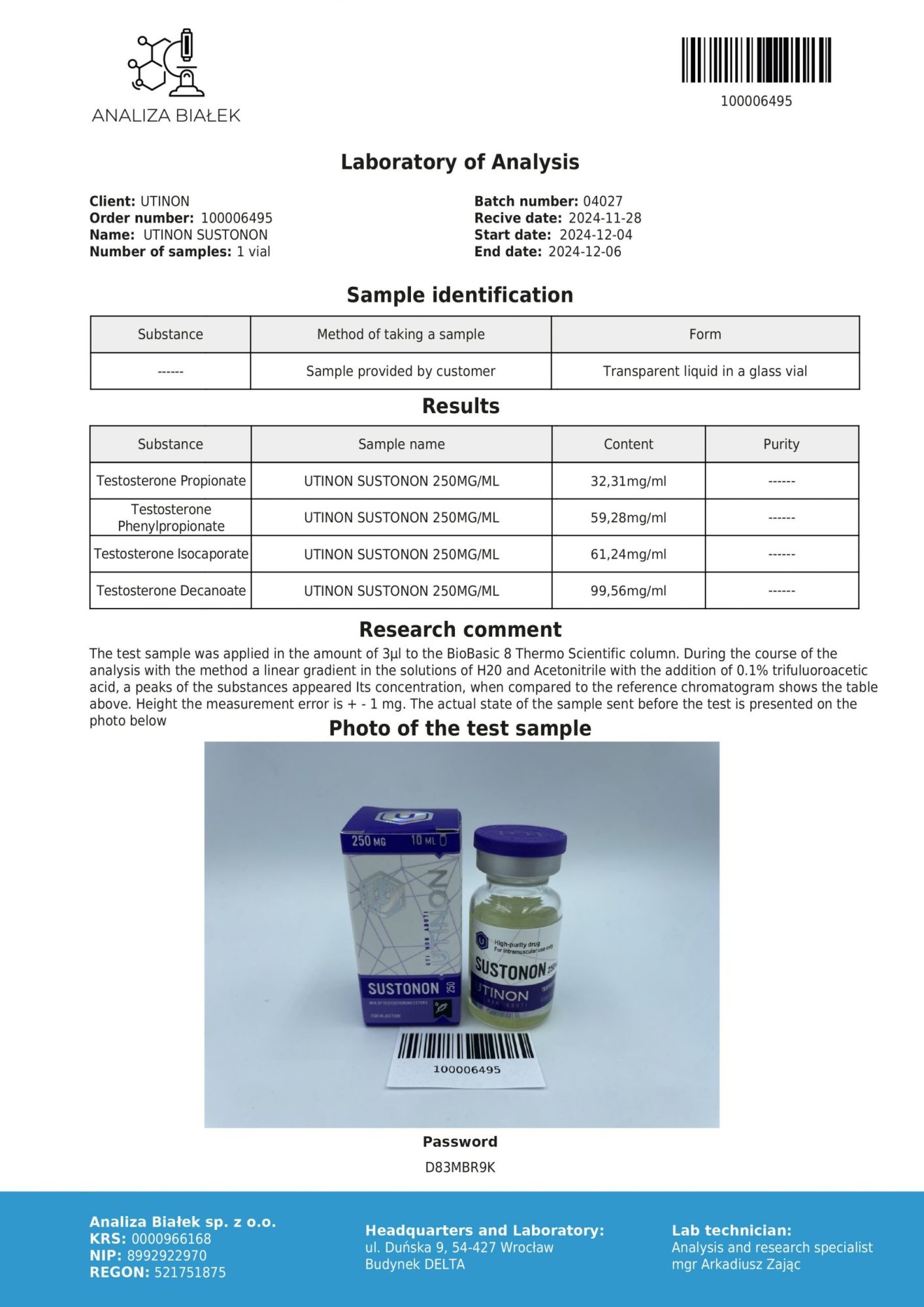 10 ml vial Sustanon van 250 mg/ml van het merk Utinon.